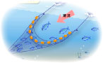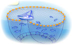 15トン未満の漁船で、袋状の部分(網目に刺させたり、絡ませたりする部分)と、魚を追い込む為の部分からなる網で操業する漁法です。