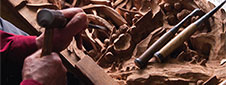 富山県の西部 井波町は、現在、約120軒の工房で約200人の彫刻師が活動する彫刻の町です。