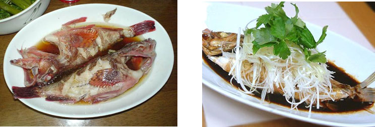 この料理に合う魚は、基本的に白身魚なら何でも良いですが、中でもハタ類、キンキ、メバル、カサゴ、アマダイなどのふっくら仕上がるものが適しています。切身でも良いですが、赤い色の魚を一匹丸ごと蒸した方が、見栄えが豪華になります。何よりも大事なのは魚の鮮度です。鮮度命の料理です。