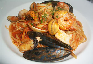 一般的には、アサリ、イカ、エビ、カニ、ムール貝、ホタテ等がよく使われます。これといった一定のレシピはなく、好みで魚介類を入れてトマトソースで仕上げた料理にはペスカトーレと付くことが多いです。