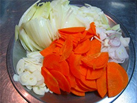 香味野菜を炒め、魚のアラなどを加え更に炒め、白ワイン、水、香辛料を加えアクを取りながら煮詰めて、裏漉しして出来上がりです。