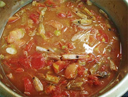 トマトと甲殻類の旨味を愉しみたいのでブイヨン等は入れません。