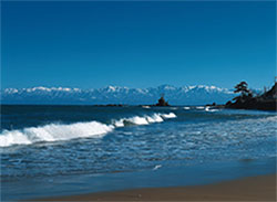 海岸沿いを走るJR氷見線(高岡駅-氷見駅)では、気象条件が良ければ、富山湾越しに雄大な立山連邦を見渡せるという絶景を見ることが出来ます。