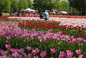 国内最大、600品種250万本が咲き誇る公園(フェア)は壮観の一言です。毎年、新種が発表されており、それらを含めた球根の販売も行われています。
