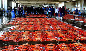 <レッドカーペット セリを待つ紅ズワイガニ 新湊漁港にて>